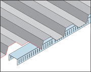 Slotted Slip Track (SLT) member is used as vertical deflection track in interior non bearing wall assemblies. The U-shape track has 1 1/2" vertical slots spaced 1" along both legs. The track section is fabricated from hot-dipped galvanized steel complying with ASTM A653, with a minimum G40 coating. The framing members comply with ASTM C645.
