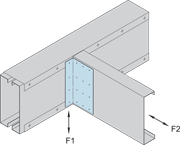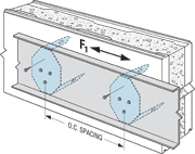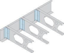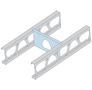 Web stiffeners are used to provide reinforcement of joist webs to prevent crippling. Web reinforcement is often required by design to enhance the load capacity of joists. Web stiffeners are installed on the outside of the C-joist.